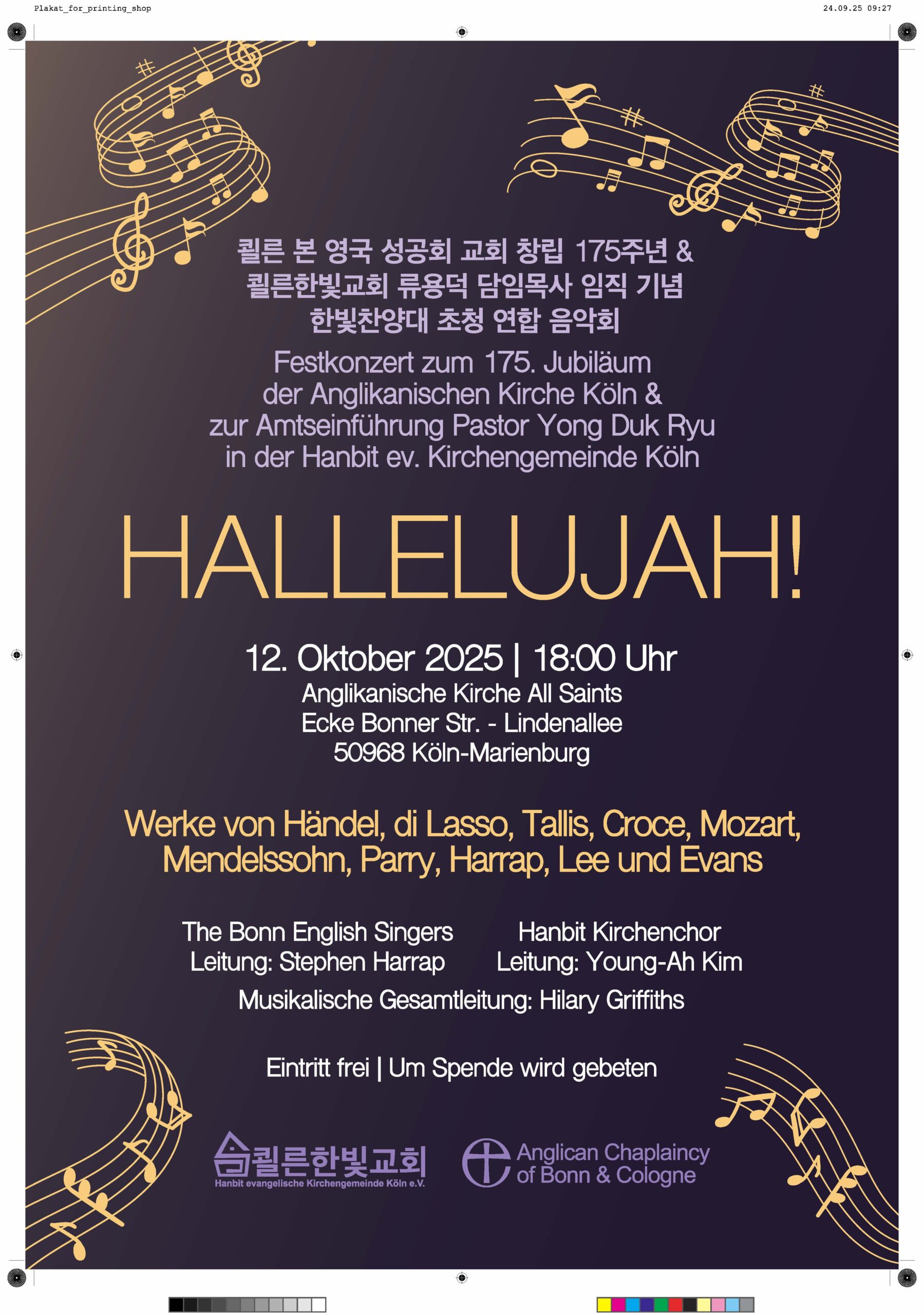 Hallelujah! Festkonzert 12. Oktober 2025 18:00 The Bonn English SingersVeranstaltungsort Anglikanische Kirche All SaintsEcke Bonner Str. -Lindenallee50968 Köln-Marienburg TwitterFacebook